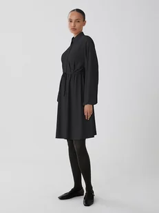 Sukienka "Visurashil" w kolorze czarnym - z poliestru pochodzącego z recyklingu - kołnierz: kent - zapięcie: skrócona listwa guzikowa - krój rękawów: bufiasty - zakończenie rękawów: elastyczne - talia: