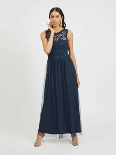 Vila Damska sukienka Vitinny Bitten L/S Lace Detail Dress/Za, granatowy blezer, L