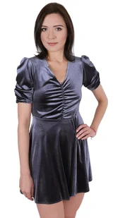 Śliczna, welurowa sukienka z marszczonymi rękawami oraz drapowaniem przy dekolcie. Odcinana w pasie. Wykonana z miękkiego, miłego w dotyku materiału. Skład: ...