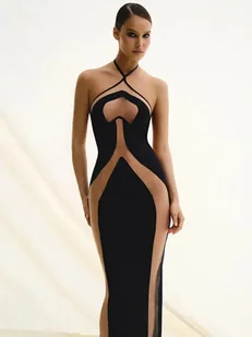 Wieczorowa sukienka z prześwitującymi elementami - Czarny L