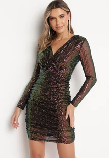 Wielokolorowa Sukienka Mini w Cekiny i Kopertowym Dekoltem Astiara - Born2be
