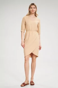 Wiosenna SUKIENKA z dekoltem w serek | rękawy 3/4 | Beżowa XL