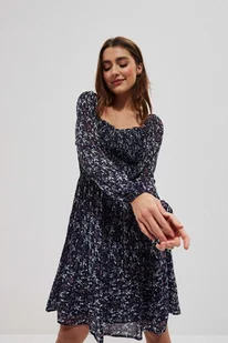100%POLIESTER Wdzięczna, granatowa sukienka w roślinny wzór. Duży, prostokątny dekolt zarówno z przodu jak i z tyłu. Góra ze ściągacza doskonale dopasowuje s...