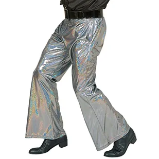 xL Holograficzne spodnie z cekinami - srebrny kostium bardzo duży na lata 70-te Travolta noc gorączka motyw fantazyjna sukienka