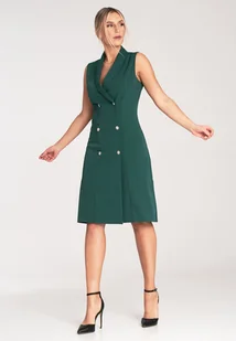 Żakietowa sukienka midi z guzikami - zielona sukienka M1067 rozmiar M