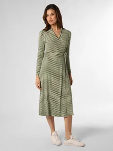 Efektowny model przyciągający wzrok: sukienka marki zero wyróżnia się ekstrawaganckim wzorem na całej powierzchni oraz podkreślającym sylwetkę stylem kopertowym.