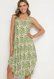 Zielona Bawełniana Sukienka Rozkloszowana w Abstrakcyjny Wzór Natiliana