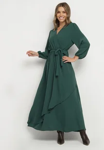 Zielona Kopertowa Asymetryczna Sukienka Koktajlowa z Wiskozą Ozdobiona Paskiem Lanoresa