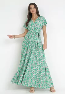 Zielona Sukienka Maxi z Plisowanym Dołem i Gumką w Pasie Maal
