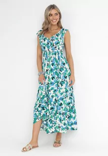 Zielona Wiskozowa Sukienka Maxi z Kopertowym Dekoltem i Gumką w Talii Erian
