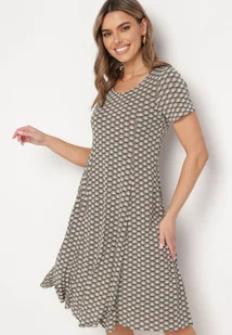 Zielono-Beżowa Letnia Sukienka z Wiskozy w Mozaikowy Wzór Ivalia