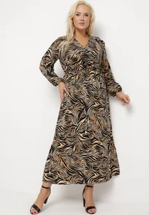 Czarno-Brązowa Sukienka Maxi w Abstrakcyjny Print Wiązana w Pasie Elennora