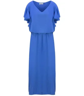 Długa, zwiewna sukienka MAXI optycznie wydłużająca figurę Swobodny fason z gumką w pasie Posiada rozcięcie z lewej strony, które subtelnie wyeksponuje kawałe...