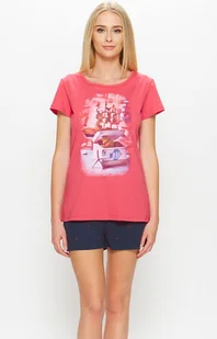 Bawełniana piżama damska z koszulką na krótki rękaw. Krótkie spodenki w modny print. Wykonana z wysokiej jakości bawełny.