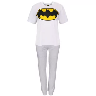Biało-szara, męska długa piżama z dużym nadrukiem symbolu jednego z superbohaterów - Batmana. Długie spodnie z bez uciskową gumką w pasie, koszulka o prostym...