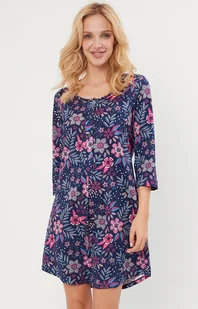 Bawełniana koszula damska z 3/4 rękawem Folk to propozycja dla kobiet, które chcą wnieść nieco finezji do nocnej garderoby. Posiada wygodny, lekko rozkloszowany fason, który zapewni komfort podczas snu. Wyróżnia ją modny nadruk w kolorowe kwiaty i liście, dzięki któremu całość prezentuje się bardzo oryginalnie. Rozpinana koszula nocna ma również praktyczne zapięcie na guziki oraz rękaw o długości .