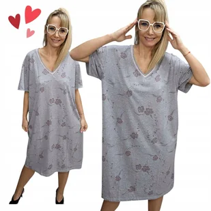 Bawełniana Koszula Nocna KWIATY Luźna Wygodna Piżama na prezent 48 50 4XL