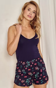Bawełniana piżama damska Delia 3111 wykonana z wysokiej jakości dzianiny. Koszulka na wąskich ramiączkach idealnie przylega do ciała. Do kompletu krótkie szorty ze wzorem o motywie malin. Piżama świetnie dopasowuje się do sylwetki i zapewnia swobodę ruchów.