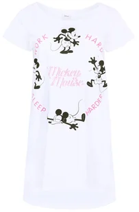 Biała, damska koszula nocna z motywem Myszki Mickey, wykonana z bawełny wysokiej jakości. Posiada krótki rękaw, okrągły dekolt oraz delikatnie dłuższy tył. W...