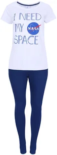 Damska piżama dwuczęściowa, biało - niebieska, z motywem agencji kosmicznej NASA. Piżama składa się z białej bluzki na krótki rękaw oraz długich, niebieskich...