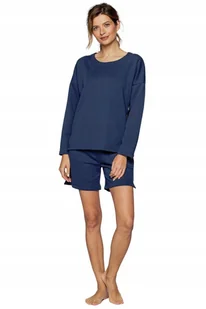Wygodny komplet damski - z miłej w dotyku tkaniny - bluza o luźnym kroju z długim rękawem - okrągły dekolt - krótkie spodenki z kieszeniami - boki w bluzie i...