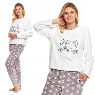 Ciepła PIŻAMA DAMSKA Polarowa z Uroczy Kotek Gruba Długi Rękaw MORAJ L