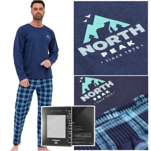 Cornette Piżama Męska Długi Rękaw Granatowy Kratka Bawełniana Rozmiar L