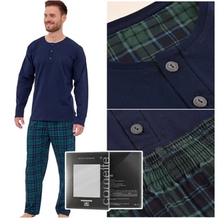 Cornette Piżama Męska Długi Rękaw Zielona Kratka Granatowy Bawełniana Rozmiar M