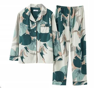 Spodenki – długie, luźne, na wygodnej gumce, posiadają proste nogawki, bez kieszeni. Rozpinana konstrukcja z długim rękawem umożliwia łatwe zakładanie i zdejmowanie, dodając praktyczności do stylu. Długie spodnie bez kieszeni na elastycznej gumce doskonale dopasowują się do sylwetki, zapewniając komfort i swobodę ruchów, - wykonana z przyjemnego, bawełnianego materiału, przewiewna i miła w dotyku, przepuszcza powietrze, pozwala skórze oddychać i zapobiega poceniu się ciała, zapewniając komfort w czasie snu, - posiada ciekawe kolory i wzornictwo, - piżama dobrze posłuży do spania, ale też do zwykłego krzątania się po domu na chłodne wieczory czy poranki, może zastąpić domowy dres, świetnie sprawdzi się po kąpieli czy saunie, ale także może stanowić dobry wybór dla tych pań, które wybierają się do szpitala, sanatorium itp. i potrzebują schludnej piżamy, - piżama jest elegancka i praktyczna, to dobry wybór dla kobiet, które chcą ładnie wyglądać podczas snu a jednocześnie czuć się komfortowo.