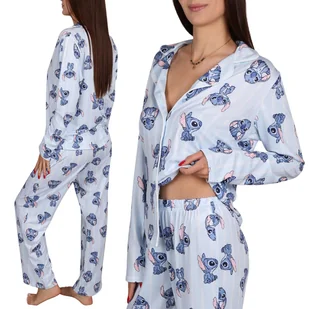 DISNEY Stitch Damska, ROZPINANA piżama z długim rękawem, SZEROKIE NOGAWKI, zapinana na guziki, KOMPLET do spania L