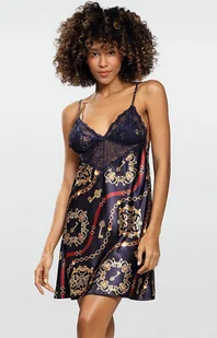 Model Dk-HA to jeden z waszych ulubionych w naszej ofercie. Nowość 2022 to halka w modny print w złote łańcuchy. Góra obszyta jest delikatną, granatową koronką. Halka jest elegancka, idealnie sprawdzi się na romantyczny wieczór we dwoje. Halka posiada regulowane ramiączka dzięki czemu można ją idealnie dopasować do naszych wymiarów.