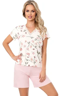 Donna piżama damska z wiskozy w kwiaty Amaris 1/2 - kwiatowa lekkość i kobiecy detal. Model Amaris 1/2 marki Donna to piżama, która łączy komfort noszenia z romantycznym, kobiecym wyglądem. Wykonana z miękkiej, przewiewnej wiskozy, ozdobiona kwiatowym wzorem i subtelną koronką, jest idealnym wyborem na ciepłe noce oraz chwile relaksu.