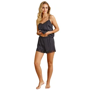 Elegancka czarna piżamka damska ze zwiewnej satyny doctor nap -xl