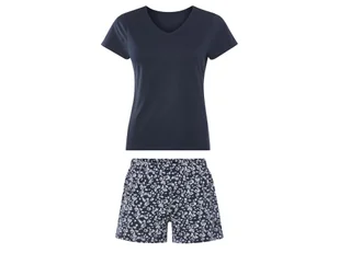 esmara® Piżama damska z bawełny Opis produktu wspieramy zrównoważoną uprawę bawełny w Afryce przyjemny komfort noszenia dzięki czystej bawełnie spodenki z wygodnym elastycznym pasem granatowy: koszulka z dekoltem w serek biały/różowy: koszulka z okrągłym dekoltem Cechy produktu table{width:100%;}td{padding-right: 30px; padding: 0.5rem; border-bottom: 0.0625rem solid #e3e4e5;} tr: nth-child(odd) {background-color: #F2F3F4;} Kolory: granatowy; biały/różowy Wzór: