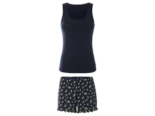 esmara® Piżama damska z bawełny Opis produktu wspieramy zrównoważoną uprawę bawełny w Afryce przyjemny komfort noszenia dzięki czystej bawełnie niebieski: top z okrągłym dekoltem, koronką i regulowanymi ramiączkami szorty z wygodną gumką w pasie granatowy/biały: ecoprint - 100% ekologiczny nadruk na tkaninie top z okrągłym dekoltem i regulowanymi ramiączkami z koronką szorty z wygodną gumką w pasie granatowy: ecoprint - 100% ekologiczny nadruk na tkaninie top z okrągłym dekoltem szorty z gumką w pasie, ozdobną kokardką i marszczeniem na dole nogawek Cechy produktu table{width:100%;}td{padding-right: 30px; padding: 0.5rem; border-bottom: 0.0625rem solid #e3e4e5;} tr: nth-child(odd) {background-color: #F2F3F4;} Kolory: