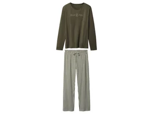 esmara® Piżama damska z bawełny Opis produktu Wspieramy zrównoważoną uprawę bawełny w Afryce Przyjemny komfort noszenia dzięki czystej bawełnie Ecoprint - 100% ekologiczny nadruk na tekstyliach Oliwkowy: koszulka z obniżoną linią ramion i nadrukiem, spodnie z wygodnym elastycznym pasem i wiązaniem Różowy: koszulka z kieszonką na piersi, spodnie z wygodnym elastycznym pasem, wiązaniem i ściągaczami Cechy produktu table{width:100%;}td{padding-right: 30px; padding: 0.5rem; border-bottom: 0.0625rem solid #e3e4e5;} tr: nth-child(odd) {background-color: #F2F3F4;} Kolory: oliwkowy; różowy Wzór: