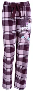 Długie, fioletowe spodnie w kratę do spania, z wizerunkiem Pani Imbryk i filiżanki Bryczka, bohaterów z filmu animowanego "Piękna i Bestia", wyprodukowanego ...