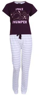 Damska, dwuczęściowa piżama składająca się z fioletowej koszulki na krótki rękaw oraz długich, szarych spodni w paski. Piżama z wizerunkiem królika Tuptusia,...
