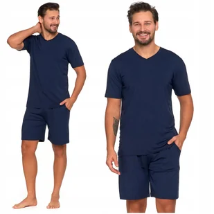 Gładka PIŻAMA MĘSKA Elegancka Krótki Rękaw Szorty Wygodna Granat MORAJ M