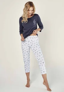 Piżama damska Magnolia została wykonana z wysokogatunkowej, przyjemnej 100% bawełny. Granatowa koszulka z rękawem 3/4 i okrągłym dekoltem. Do kompletu długie...