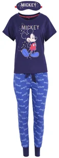 Damski komplet składający się z piżamy i opaski do spania. W skład piżamy wchodzi koszulka na krótki rękaw oraz długie spodnie. Spodnie z gumką w pasie, noga...