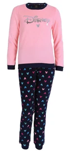 Ciepła, polarowa piżama składająca się z długich spodni oraz bluzki na długi rękaw. Bluzka z cekinowym napisem Disney. Granatowe spodnie na gumce w powtarzaj...
