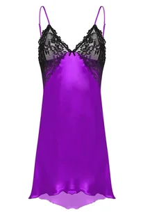 Halka uszyta jest według klasycznego kształtu, jednak z tyłu jest nieco dłuższa. Haleczka pięknie eksponuje biust oraz sięga do połowy uda. Natomiast jej trójkątne miseczki obszyte są czarną, kwiatową koronką. Halka Evelyn wykonana jest z satyny,