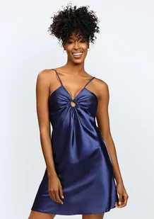 Halka Kamaria to krótka satynowa koszulka nocna o okrągłym splocie przy dekolcie, które podkreśla pięknie biust. Cienkie, regulowane ramiączka zwężane ku górze pozwalają dostosować długość do naszych preferencji. Halka Kamaria jest świetną propozycją na noc. Satynowy materiał zapewnia doskonały komfort snu. Halka dostępna jest w czterech kolorach: czarnym, czerwonym, granatowym oraz białym.