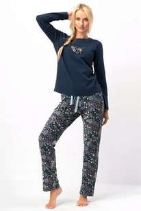 Dwuczęściowa piżama damska LNS 570 wykonana z naturalnej bawełny z dodatkiem elastanu, która gwarantuje ciepło, miękkość i doskonałe dopasowanie do sylwetki. Klasyczna bluzka z długim rękawem i okrągłym dekoltem ozdobiona jest subtelnym, roślinnym motywem na środku, co nadaje jej delikatnego, kobiecego charakteru.
