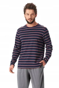 Piżama męska bawełniana. Koszulka z długim rękawem w dziane paski, spodnie w kolorze grafitowym. Skład: 95% bawełna, 5% elastan.