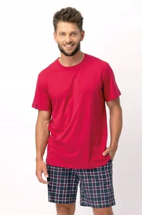 MNS 453 to męska piżama od marki KEY, która łączy w sobie prostotę i wygodę. Górna część kompletu to klasyczny t-shirt z krótkim rękawem w intensywnym, czerw...