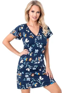 Dekolt typu VDługość przed kolanoGumka pod biustemLuźny, komfortowy krójMateriał z nadrukiemRękaw krótkiRękaw wykończony mereszkąBawełna: 100%