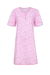 KOSZULA NOCNA DAMSKA L KRÓTKI RĘKAW BAWEŁNIANA NA LATO WYGODNA RÓŻ BIEL