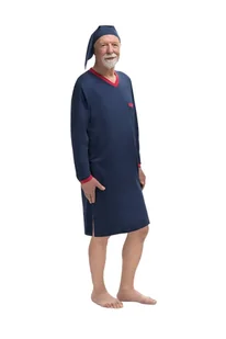 Koszula Nocna Męska 2Xl Długi Rękaw Bawełniana Dla Taty Dziadka Granatowa Szlafmyca4